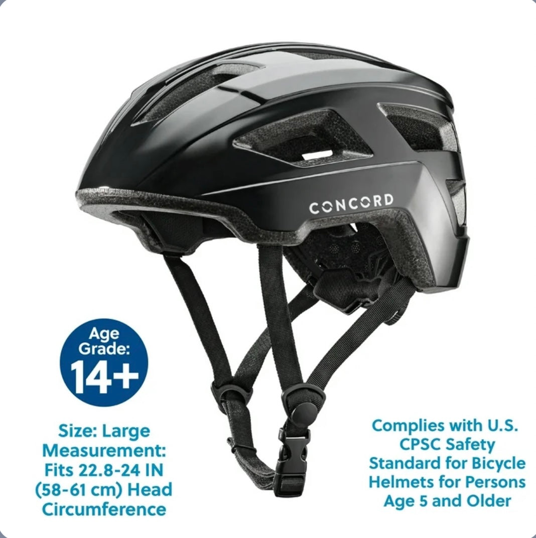 Concord Adult Bike Helmet, Black, Adjustable, Ages 14+